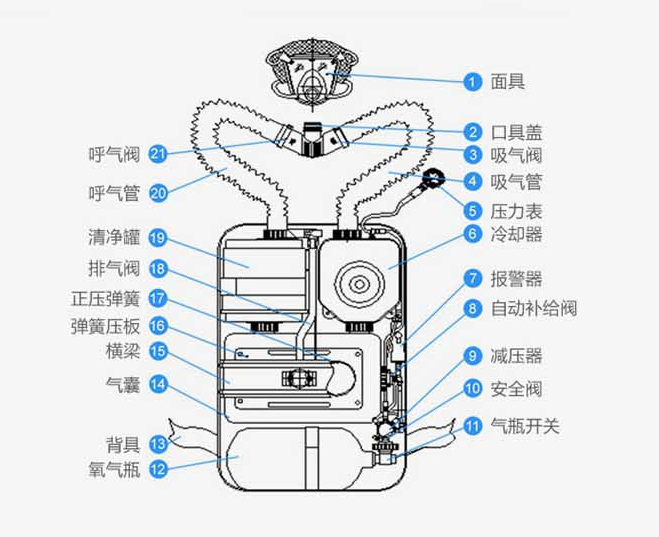 氧氣呼吸器是隔絕式呼吸防護(hù)用品之一,他可以為我們抵擋有毒有害物質(zhì)對(duì)呼吸系統(tǒng)的傷害。主要用來給消防人員或作業(yè)人員在搶險(xiǎn)救援或危險(xiǎn)作業(yè)環(huán)境下提供安全防護(hù),由于使用情況特殊,正壓式氧氣呼吸器的正確操作尤其重要,要想了解其操作,首先還得熟悉它的部件組成,因?yàn)橹挥辛私饬搜鯕夂粑鞯闹饕M成部分及各部分作用,才能更好的掌握它的操作。,今天滄州金盾就來介紹下正壓式氧氣呼吸器各個(gè)組成部分的功能,幫助大家更好的了解正壓式氧氣呼吸器。