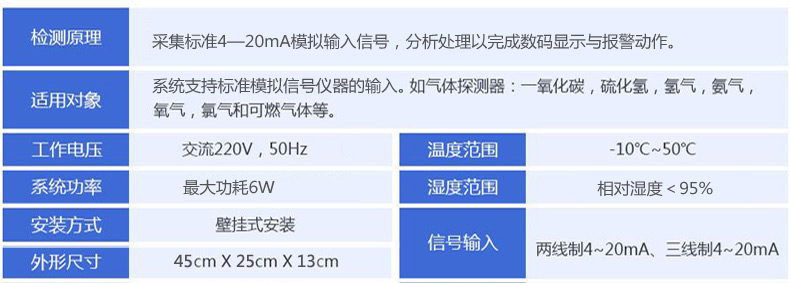 JD-GD可燃?xì)怏w檢測報警器(可燃?xì)怏w報警控制器)是本公司研制的一款可以同時處理多組4—20mA信號類型的儀器。它具有穩(wěn)定性好,準(zhǔn)確度高和參數(shù)智能化設(shè)置的特點(diǎn),外接控制端口豐富,用戶可以自由選擇掛接傳感器的種類和接入端口,并通過簡單設(shè)置即可進(jìn)行現(xiàn)場檢測與報警。系統(tǒng)主要應(yīng)用于需要檢測可燃?xì)怏w的場合中,顯示待檢氣體的數(shù)值指標(biāo)量,當(dāng)現(xiàn)場的某種待檢氣體的指標(biāo)不符合所設(shè)置的標(biāo)準(zhǔn)時,系統(tǒng)會自動進(jìn)行一系列報警動作,如報警,排風(fēng),跳閘等(根據(jù)用戶的不同設(shè)置而不同)。